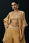 Featuring a yellow bandeau top in tissue base with mirror work. Accentuate it with pants, dangler earrings and heels for festive soirees or daytime functions.