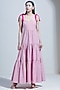Featuring a blush pink maxi dress in cotton gingham base with gathers. It has tie-up details.