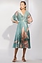 Featuring a teal blue midi dress in handloom chanderi base with iris print.