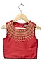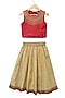 Featuring a red woven sleeveless top for girls in polyester base with embellishments. It is paired with a beige lehenga. Accentuate it with cute hair clips, tiny bangles and comfy juttis for a playful yet stylish ensemble, ideal for family functions, weddings or sangeet functions.