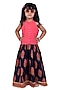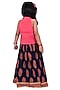 Featuring a blue lehenga for girls in chanderi base with print. It is paired with an embroidered coral choli. Style it with cute hair accessories and sandals for a festive occasion or wedding ceremony.