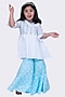Featuring a white top for girls in cotton base with embellishment. It is paired with blue sharara pants. Style it with cute hair accessories and sandals for a birthday party celebration or festive occasion.