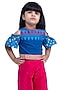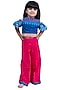 Featuring a blue top for girls in cotton base. It is paired with pink palazzo pants. Style it with cute hair accessories and sandals for a birthday party celebration or festive occasion.