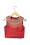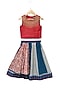 Featuring a blue lehenga for girls in polyester base with print. It is paired with a red embroidered top. Style it with cute hair accessories and sandals for a festive occasion or wedding ceremony.