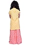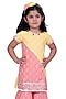 Featuring a yellow and coral top for girls in rayon base with print. It is paired with coral sharara pants. Style it with cute hair accessories and sandals for a birthday party celebration or festive occasion.