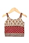 Featuring a green lehenga for girls in brocade base with print. It is paired with an embroidered maroon blouse. Style it with sandals and hair accessories for a festive occasion or wedding ceremony.