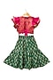 Green Brocade Printed Sharara Set For Girls