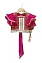 Featuring a pink top for girls in brocade base with embroidery. It is paired with green printed sharara pants. Accessorize it with matching hair accessories and sandals for a stylish ensemble, ideal for festive occasion.