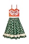 Featuring a green lehenga for girls in polyester base with print. It is paired with an orange top having placement embroidery. Style it with cute hair accessories and sandals for a festive occasion or wedding ceremony.