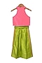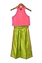Featuring a coral top for girls in chanderi base. It is paired with lime green palazzo pants. Accessorize it with matching hair accessories and sandals for a stylish ensemble, ideal for festive occasion.