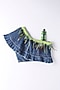 Featuring a blue top for girls in denim base with print. It is paired with lime green printed palazzo pants. Accessorise it with matching hair accessories and sandals for a stylish ensemble, ideal for any evening event or any pre-wedding function.