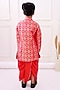Featuring a red kurta for boys in polyester base with embellishment. It is paired with an orange dhoti. Style it with a watch and a pair of mojris for a festive occasion.