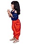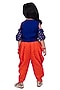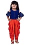 Featuring a blue top for girls in polyester base with foil print. It is paired with orange printed dhoti pants. Style it with cute hair accessories and sandals for a birthday party celebration or festive occasion.