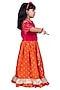 Featuring an orange lehenga for girls in polyester base with print. It is paired with an embroidered pink choli. Style it with cute hair accessories and sandals for a festive occasion or wedding ceremony.