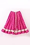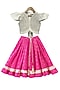 Featuring a pink lehenga for girls in polyester base with print. It is paired with a white embellished top. Style it with cute hair accessories and sandals for a festive occasion or wedding ceremony.