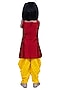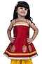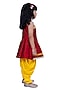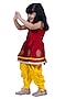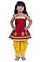 Featuring a maroon top for girls in woven jacquard base with print. It is paired with yellow dhoti pants. Style it with cute hair accessories and sandals for a birthday party celebration or festive occasion.