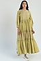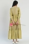 Featuring a green tiered midi dress in handwoven cotton silk base with printed polka dots and pockets.