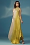 Featuring a dove grey and yellow handkerchief maxi dress in satin base with a sculptured neckline and resham work. Accentuate it with statement jewellery and heels for festive evening gatherings.