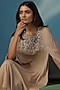 Featuring a gold cape kurta in shimmer georgette base with a round neckline, nakshi, sequins, cutdana and zardosi stone hand embroidery. It is paired with pants. Accentuate with statement jewellery and heels for festive occasions or evening events.