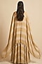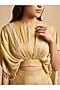 Featuring a golden gathered striped crop top in shimmer silk base with pearl, beads and latkans detail. It is paired with a skirt. Accentuate it with meenakari jewellery, block heels and a clutch for festive occasion, sangeet or mehendi ceremony.