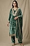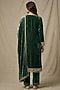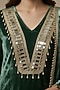 Featuring an emerald green kurta in velvet base with a v-neckline and mirror embellishments. It is paired with pants and a dupatta. Accentuate it with polki earrings and wedges for festive occasions or mehendi ceremony.