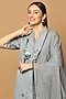 Featuring a grey A-line kurta in cotton base with applique and resham embroidery. It is paired with pants and a malai cotton dupatta. Accentuate it with statement jewellery and heels for festive occasions or cultural events.
