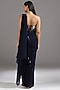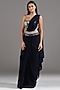 Featuring a navy blue pre-draped saree in georgette base. It is paired with structured bustier having zari, thread, sequins, metallic gold, patchwork and leather embroidery, including an embroidered belt. Accentuate it with zircon earrings and block heels for a festive occasion or cocktail ceremony.