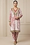 Featuring an old rose pink kurta in velvet base with a v-neckline and mirror embellishments. It is paired with pants and a dupatta. Accentuate it with polki earrings and wedges for festive occasions or roka ceremony.