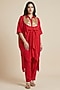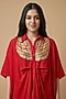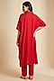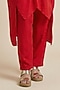 Featuring a red kaftan-style kurta in premium silk base with kimono sleeves, asymmetrical hemline and gathered waist. It is paired with straight pants. Accentuate it with meenakari jewellery, block heels and a clutch for festive occasion, sangeet or pooja ceremony.