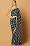 Featuring a teal blue saree in chinon base with cut beads, sequins and swarovski hand embroidery. It is paired with a matching unstitched blouse piece.