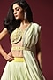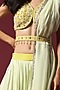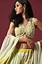 Featuring a yellow and mint ombre lehenga in crepe silk base. It is paired with a blouse having pearl, cut beads and sequins hand embroidery, including an ombre georgette dupatta and a belt. Accentuate it with statement jewellery and heels for weddings or haldi ceremonies.