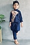 Blue Cotton Embroidered Straight Kurta Set For Boys