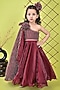 Wine Organza & Net Embroidered Dress For Girls