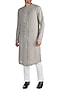 Featuring a grey kurta in linen viscose base with flat neck and dual line of buttons.