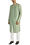 Featuring a mint green kurta in linen viscose base with flat neck and dual line of buttons.