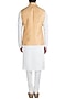 Featuring a mustard waist coat in raw silk base with hand embroidered floral motifs.