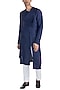 Featuring a navy blue kurta in linen viscose base with flat neck, multiple layers and lapel.