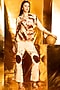 Featuring a beige top in crepe base with brown shibori hand-dye print. It is paired with matching pants.