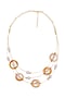 Featuring a gold finish layered necklace studded with orange agate rings and pearls, set in brass.