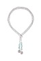 Featuring a scarf necklace studded with cubic zirconia beads, grey pearls and blue topaz tumbles, set in brass.