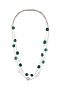 Featuring a white finish layered long necklace studded with green onyx, baroque pearls and zirconia beads, set in brass.