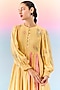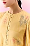 Featuring a butter yellow striped dress in organic fabric base with embroidery and bishop sleeves. Accentuate it with a sling bag, block heels and hoop earrings, perfect for brunches or evening soirees.