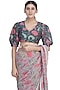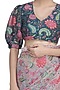 Featuring a dark teal blouse in chanderi base with chintz print and blouson sleeves. This contains only one piece.