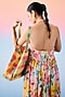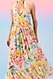 Featuring a multi-colored maxi dress in organic fabric base with tie-up detail and a halter deep V-neckline. Accentuate it with a sling bag, block heels and hoop earrings, perfect for brunches or evening soirees.