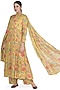 Featuring a yellow kurta in mul cotton base with chintz print. It is paired with matching pants and a dupatta.