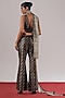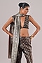 Featuring a black bustier in brocade silk base. Accentuate it with wide-leg pants, stud earrings and wedges for a festive occasion, sangeet or cultural celebrations.