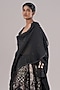 Featuring a black high-low shirt in handloom chanderi silk base with button-down and contrast stitch detail. Keep the look refined with minimal jewellery, sleek heels and bold makeup paired with neatly tied-back hair, Ideal for fashion-forward soir?es, cocktail evenings, art showcases, or modern festive gatherings.