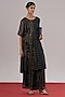 Featuring black and silver pants in handwoven zari kota doria base with block print. Style it with minimal metallic jewellery, strappy heels and a sleek clutch for an understated, elegant finish, perfect for evening gatherings, festive dinners, cultural events, or contemporary formal occasions.
