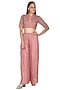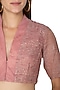 Featuring a blush pink V-neck blouse in kota silk base. It is woven and has half sleeves.