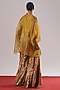 Featuring mehendi green wide-leg pants in brocade and tissue silk base with patchwork. Keep the look refined with a blazer, minimal jewellery, sleek heels and bold makeup paired with neatly tied-back hair, Ideal for fashion-forward soirees, cocktail evenings, art showcases, or modern festive gatherings.